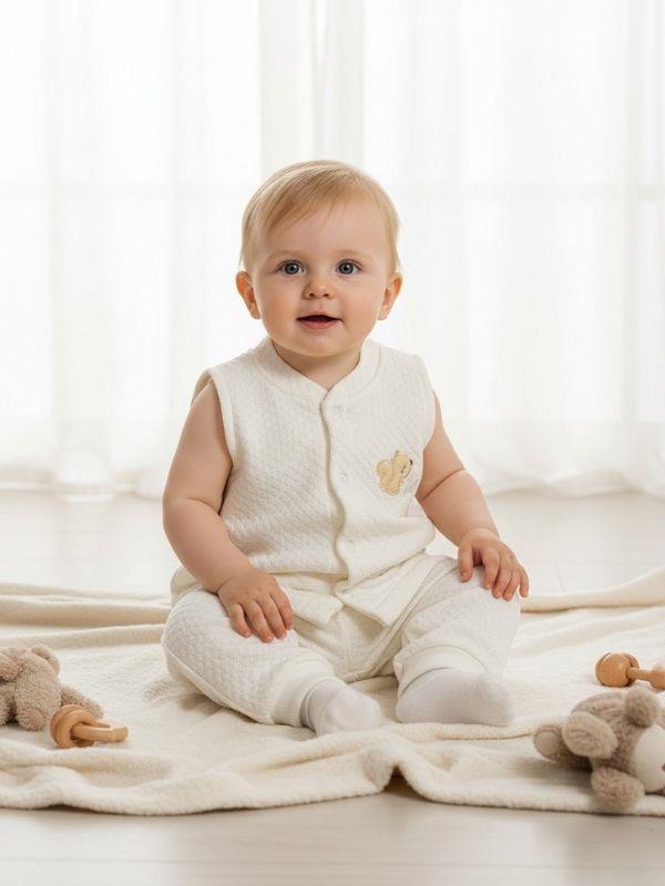 Bebek Kapitone Dokulu Yelek, miniklerin konforu düşünülerek tasarlanmış hafif ve yumuşak yapısıyla öne çıkar. Kapitone dokusu sayesinde vücut ısısını dengede tutmaya yardımcı olurken, kolsuz tasarımı bebeğin hareket özgürlüğünü destekler. Ön kısmında yer alan çıtçıtlı kapama detayı, kolay giydirme ve pratik kullanım sağlar. Yuvarlak yaka formu, bebeğin boyun bölgesini rahatsız etmeden gün boyu rahat bir deneyim sunar. Göğüs bölümündeki sevimli nakış detayı ürüne zarif ve bebeklere özel bir görünüm kazandırır. Tek başına ya da body, zıbın ve tulumların üzerine kombinlenerek kullanılabilen bu yelek; ev içi kullanım, hastane çıkışı ve mevsim geçişleri için ideal bir tamamlayıcıdır. Aynı zamanda şık ve kullanışlı bir hediye alternatifi olarak da tercih edilebilir.