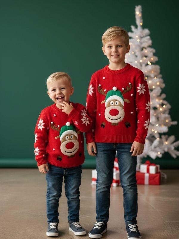 Çocuk Yılbaşı Temalı Geyikli Kırmızı Kazak (26MKZK1511)