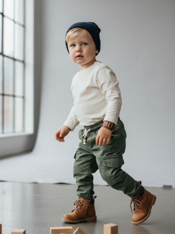 Erkek Bebek Bel Lastikli Dokuma Yeşil Pantolon (24MPNTE30016)