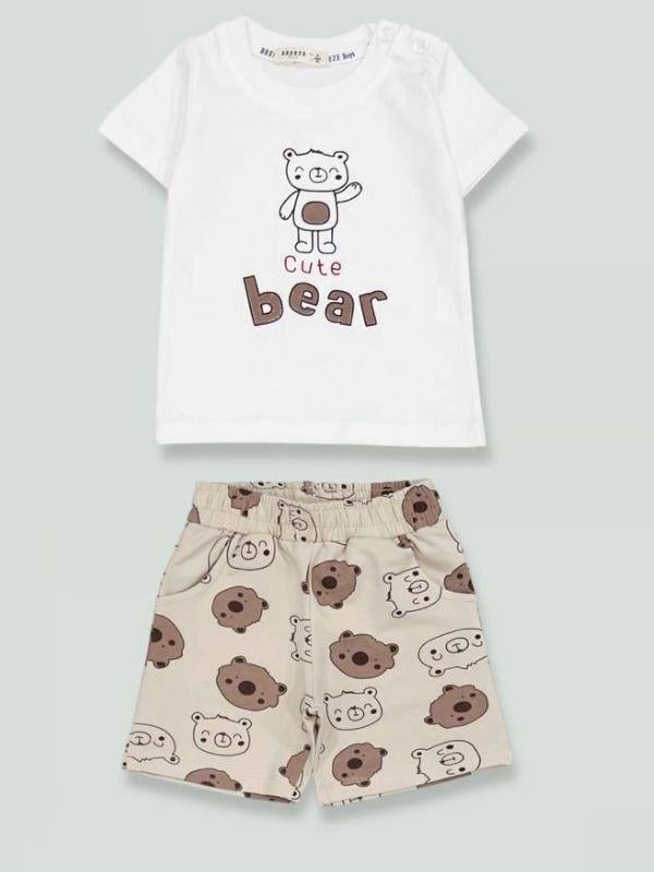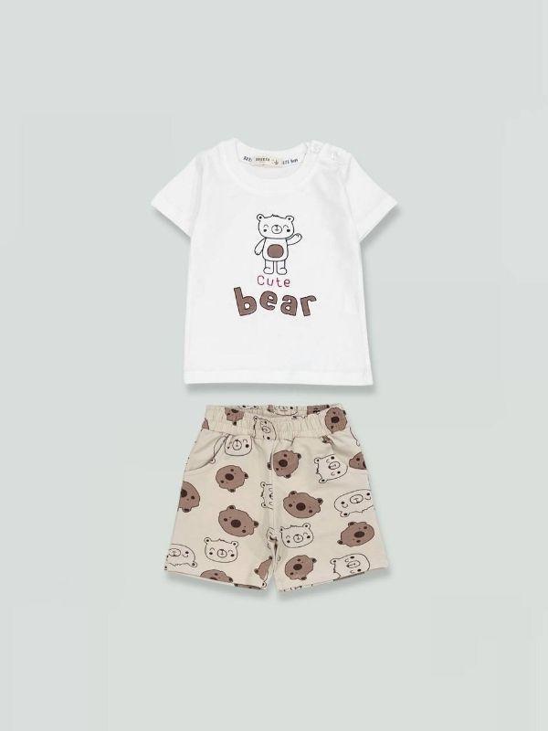 Erkek Bebek Cute Bear Baskılı Şortlu Takım (25YTKME21477)