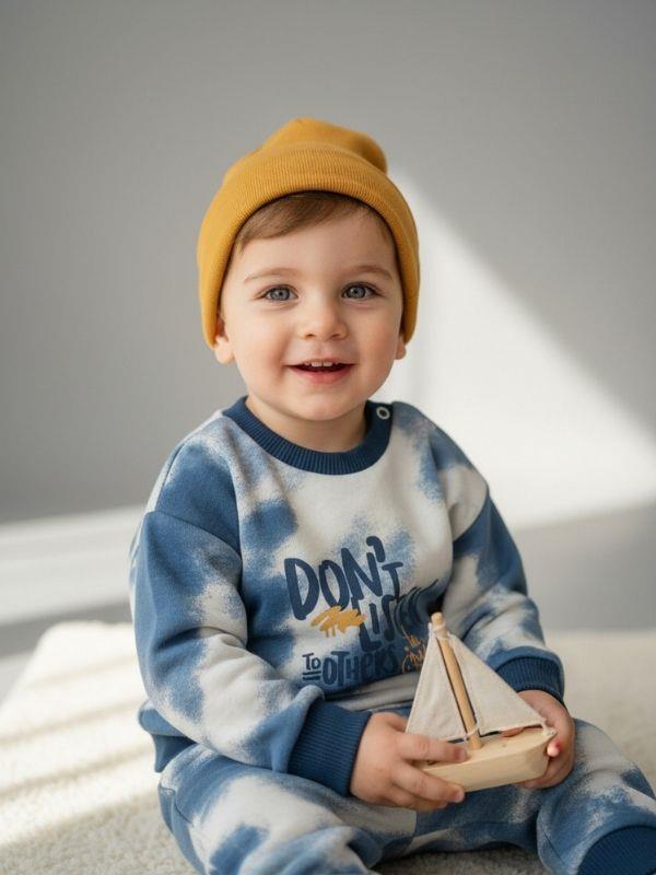 Erkek Bebek Pamuklu Batik Desenli Don't Listen Yazılı Sweatshirt (24MTSHE20140)