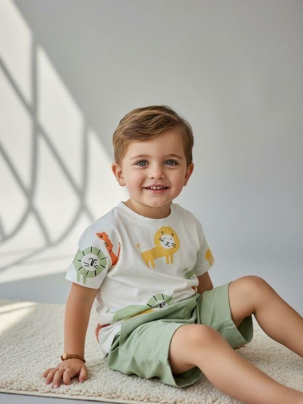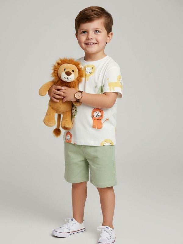 Erkek Çocuk Pamuklu Aslan Baskılı Şortlu Takım (25YTKME4150036)