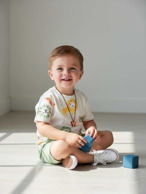 Erkek Bebek Aslan Baskılı Tişört ve Şort Takımı Yaz aylarında miniklerin rahatlığı düşünülerek tasarlanan bu 2’li takım, sevimli aslan figürleriyle eğlenceli ve şık bir görünüm sunar. Günlük kullanım, oyun saatleri ve dışarı aktiviteleri için ideal bir tercihtir. Kısa kollu tişört, bisiklet yaka formundadır ve omuz kısmında yer alan çıtçıt detayı sayesinde kolay giydirilip çıkarılabilir. Üzerindeki renkli ve eğlenceli aslan baskıları çocukların ilgisini çeker. Şort parça ise esnek bel yapısı ile bele rahatça uyum sağlar, hareket özgürlüğü sunar. Yan cepli tasarımı ile kullanım kolaylığı sağlar. Yumuşak ve nefes alabilen pamuklu kumaşı sayesinde sıcak havalarda terletmez ve bebeğinizin cildine nazikçe temas eder. Ürün Özellikleri 2 parçalı takım (tişört + şort) Kısa kollu, bisiklet yaka tişört Omuzdan çıtçıtlı tasarım Eğlenceli aslan baskı detayları Esnek bel yapısına sahip şort Yan cepli tasarım Hafif ve nefes alabilen kumaş Günlük kullanım ve yaz ayları için uygundur Rahat kalıp, hareket özgürlüğü sağlar Kumaş & Bakım Pamuk ağırlıklı kumaş Makinede yıkanabilir Uzun ömürlü kullanım için düşük ısıda yıkama önerilir Eğlenceli desenleri ve konforlu yapısıyla yaz aylarında bebeğinizin favori takımlarından biri olmaya aday