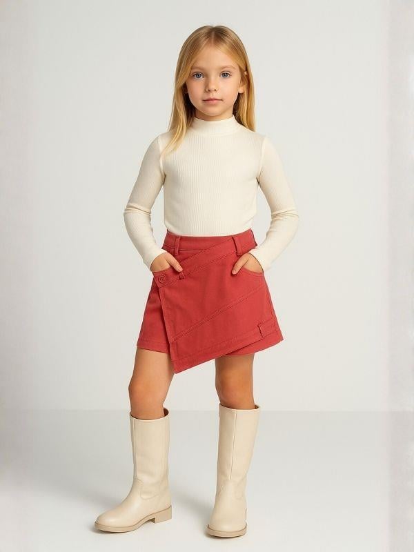 Kız Çocuk Asimetrik Kesim Şort Etek Ürün İçeriği: %93 Pamuk, %7 Elastan Ürün Açıklaması: Zarif tasarımı ve modern görünümüyle dikkat çeken bu kız çocuk şort etek, rahatlığı ve şıklığı bir arada sunuyor. Yüksek pamuk oranı sayesinde cilt dostu bir dokunuş sağlar; yumuşak, nefes alabilen kumaşıyla gün boyu konforlu bir kullanım deneyimi yaşatır. İçeriğinde bulunan elastan oranı ise kumaşa hafif bir esneklik kazandırarak hareket özgürlüğünü artırır. Asimetrik kesimi ve önde yer alan düğme detayı, eteğe özgün bir stil kazandırırken sade tasarımıyla da zamansız bir görünüm sunar. Günlük kullanım, okul kombinleri ya da özel günler için ideal olan bu model, her ortama kolaylıkla uyum sağlar. Bel kısmındaki esnek lastik detayı sayesinde çocukların vücut formuna rahatça uyum sağlar ve maksimum hareket alanı sunar. Dikişleri özenle işlenmiş, kumaş kalitesiyle uzun süre formunu koruyacak şekilde tasarlanmıştır. Hafif yapısı ve nefes alabilen dokusu sayesinde sıcak yaz günlerinde serinlik hissi verir. Bu şort etek, hem rahatlığı hem de zarif görünümüyle minik kızların gardırobunda vazgeçilmez bir parça olmaya adaydır.