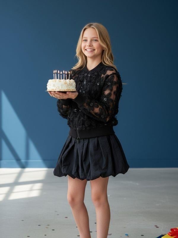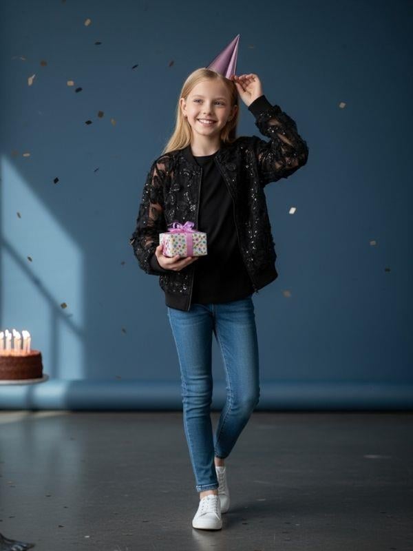 Zarif işlemeleri ve modern siluetiyle dikkat çeken bu üst giyim parçası, özel günlerde olduğu kadar günlük şıklıkta da tercih edilebilecek göz alıcı bir tasarımdır. Üst yüzeyde yer alan üç boyutlu işlemeli detaylar, ürüne sofistike bir dokunuş katarak klasik bir bomber formunu daha feminen ve iddialı bir hale getirir. Transparan kol ve gövde yapısı, hafif ve zarif bir görünüm sunarken hareket ettikçe ışığı yakalayarak parıltılı bir etki oluşturur. İnce ve nefes alabilen yapısı sayesinde konforlu bir kullanım deneyimi sunan model, hafif hacimli duruşuyla modern bir siluet yaratır. Manşet, yaka ve bel kısmındaki esnek ribana detayları ürüne sportif bir denge katarken aynı zamanda kullanım sırasında rahatlık sağlar. Kolay açılıp kapanan ön fermuarı sayesinde pratik bir kullanım imkânı sunar. Hem elbiselerle hem etek ve pantolonlarla uyum sağlayan çok yönlü bir tasarıma sahiptir. Doğum günü kutlamaları, özel fotoğraf çekimleri, davetler veya günlük şehir stilinde rahatlıkla tercih edilebilir. Hafif yapısı, zarif işlemeleri ve modern kesimiyle bu ceket/hırka, genç yaş grubuna hem zarafet hem de özgün bir stil sunar. Özenli işçiliği ve dikkat çekici detaylarıyla gardırobun en özel parçalarından biri olmaya adaydır.