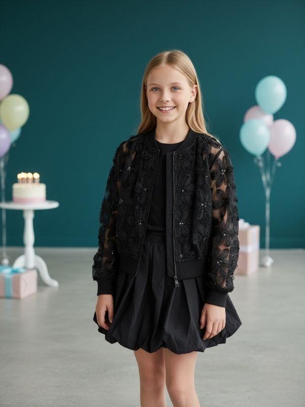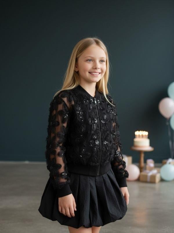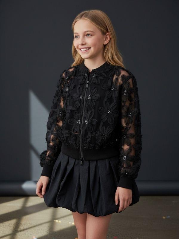 Kız Çocuk Çiçek İşlemeli Tasarım Bomber Ceket (26MCKTZ7995)