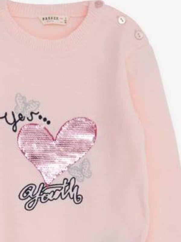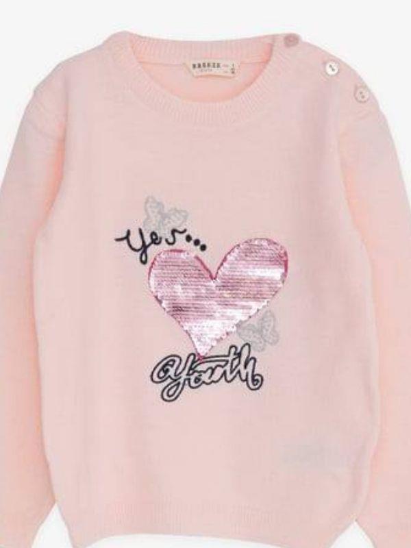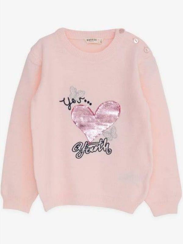 Kız Çocuk Döner Pullu Kalpli Kazak (24KKZK2203)
