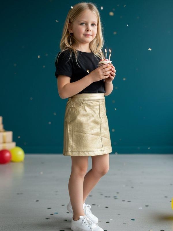 Kız Çocuk Gold Deri Etek (26METKZ2061)