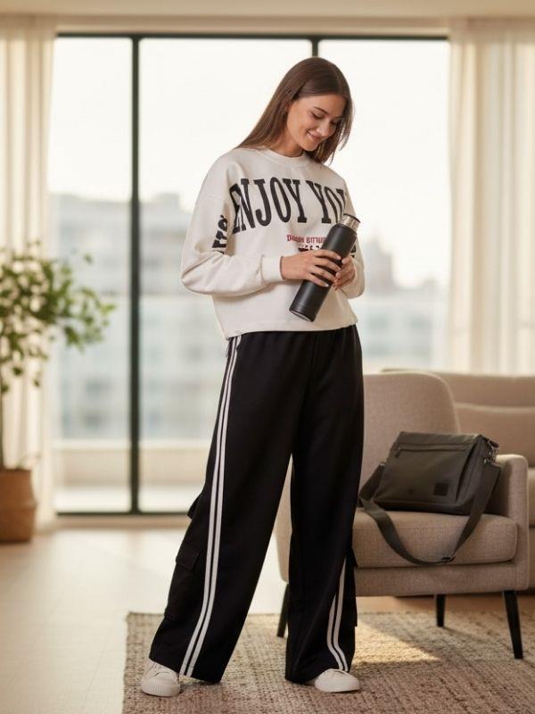 • Rahat kalıp, geniş paça modern tasarım • Yan kısımda yer alan çift şerit detayı ile sportif ve şık görünüm • Bel kısmı lastikli ve ayarlanabilir bağcık detaylı • Gün boyu konfor sağlayan yumuşak ve esnek yapı • Cepli tasarımı ile hem kullanışlı hem trend • Spor kombinler, günlük kullanım ve okul için ideal • Sweatshirt, crop üst, t-shirt ve hırkalarla kolayca kombinlenebilir • Modern kesimi sayesinde genç ve dinamik bir tarz sunar