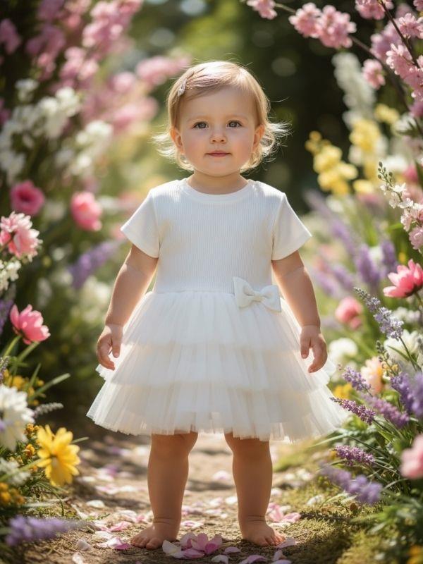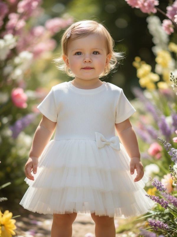 Minik prenseslerin zarafetini ön plana çıkaran bu bebek kız tül etekli elbise, sade ama bir o kadar da etkileyici tasarımıyla dikkat çekiyor. Üst kısmı yumuşacık pamuklu kumaştan üretilmiş olup bebeğinizin hassas cildine dosttur; alt kısmındaki kat kat tül etek detayı ise masalsı bir görünüm kazandırır. Yan kısmındaki minik kurdele detayı elbiseye zarif bir dokunuş katarken, rahat kesimi bebeğinizin hareket özgürlüğünü kısıtlamaz. Gündelik kullanımlarda olduğu kadar doğum günü, özel davet veya fotoğraf çekimlerinde de mükemmel bir tercihtir. Ürün Özellikleri: Üst kısım: pamuklu esnek kumaş Alt kısım: kat kat tül etek Yan kısımda dekoratif fiyonk detayı Rahat kalıp, nefes alabilen yapı Günlük ve özel gün kullanımlarına uygun Kumaş İçeriği: Kullanım Alanı: Doğum günü partileri, özel gün davetleri, fotoğraf çekimleri ve günlük kullanım için idealdir. Kombin Önerisi: Beyaz ya da pastel tonlarda saç bandı ve zarif bir hırka ile tamamlandığında kusursuz bir kombin oluşturur.