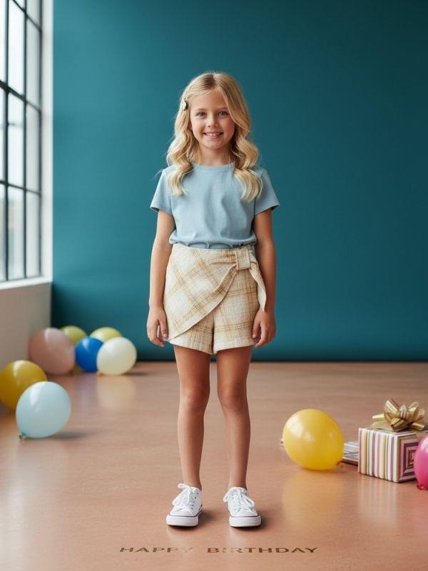 Kız Çocuk Kışlık Ekose Şort Etek (24KŞRTZ40440)