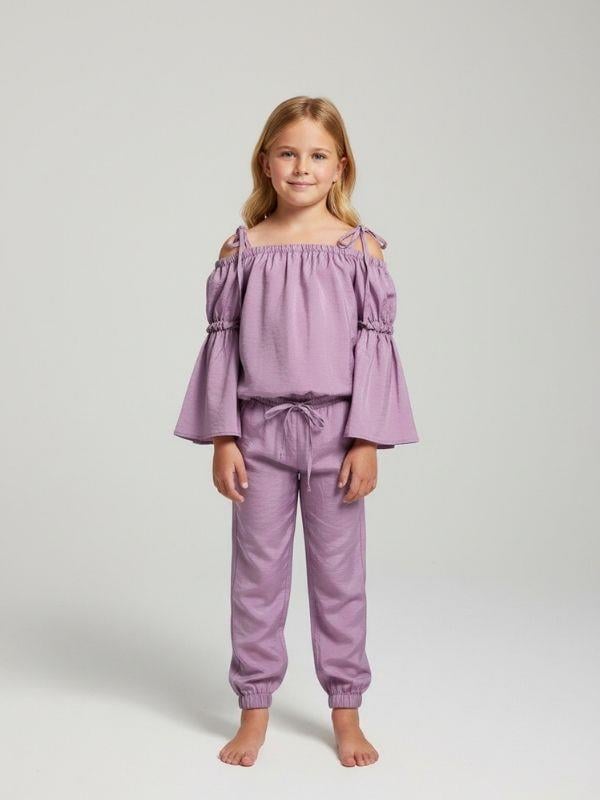 Kız Çocuk Omuzları Dekolteli İspanyol Kol Pantolonlu Takım (24YTKMZ7562)