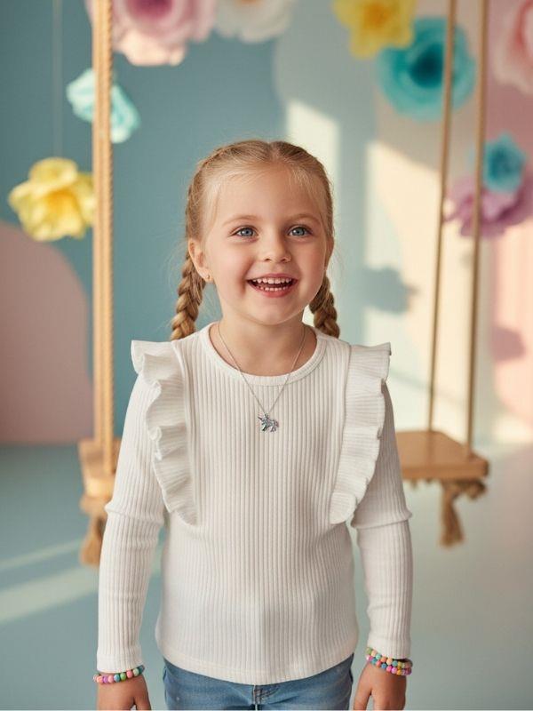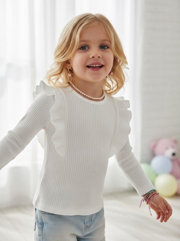 Kız Çocuk Pamuklu Fırfır Detaylı Basic Fitilli Bluz (26MBLZZ22332)