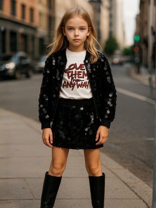 Işıltısıyla her ortamda dikkat çeken bu siyah payetli şort etek, modern tasarımıyla miniklerin gardırobuna ışıltı katıyor. Esnek beli sayesinde gün boyu rahat bir kullanım sunarken, parlak büyük payet detaylarıyla hem özel günlerde hem de günlük kombinlerde tarz bir görünüm sağlıyor. Şort formundaki iç yapısı sayesinde hareket özgürlüğü verirken, dış kısmındaki payet kaplamasıyla şıklığı ön plana çıkarır. Dans, parti ve doğum günü gibi özel anlarda parlamayı seven minik moda tutkunları için ideal bir seçimdir. Ürün Detayları: Şort formunda etek tasarımı Parlak siyah büyük payet kaplama Esnek bel yapısı Rahat ve yumuşak iç astar Şık ve konforlu kullanım