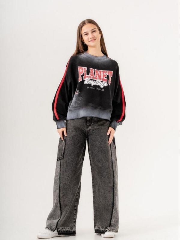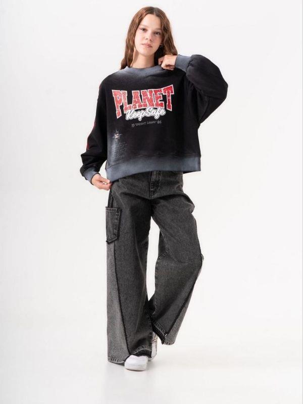 Kız Çocuk Planet Keep Safe Baskılı Oversize Tasarım Sweatshirt (26MSWTZ7351)
