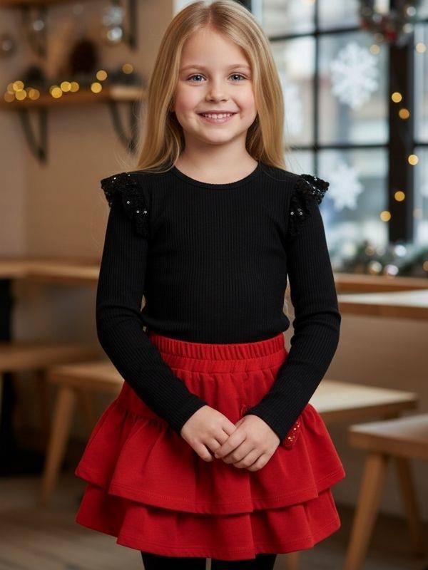 Kız Çocuk Pullu Body Kırmızı Katkat Etekli Takım (26MTKMZ2157)