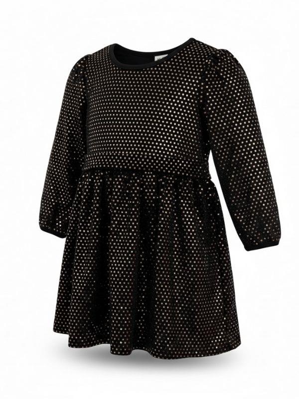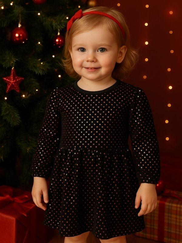 Işıltının en şık hâlini seven minik prensesler için tasarlanan pul payetli siyah elbise, özel gün kombinlerinin vazgeçilmezi oluyor. Baştan aşağı ışıldayan payet dokusu, hareket ettikçe parlayarak muhteşem bir sahne etkisi yaratır. Bel kısmında bulunan şık kuşak detayı elbiseye hem form kazandırır hem de modern bir görünüm sunar. Uzun kollu yapısı sayesinde sonbahar–kış sezonunda rahatlıkla kullanılabilirken, iç kısmındaki yumuşak astar ciltte rahatsızlık hissini önler. Yılbaşı, doğum günü, parti, karne günü ve özel çekimler için ideal bir tasarımdır. Özellikler: Baştan aşağı parlak payet detaylı şık tasarım Uzun kol – omuzda hafif puf duruş Belde kuşak detayı Işıltılı özel gün konseptleri için mükemmel Astarlı iç yapı sayesinde konforlu kullanım Modern, dikkat çekici ve fotoğraflarda çok havalı görünen form Kumaş İçeriği: Üst yüzey: Payet işlemeli özel kumaş