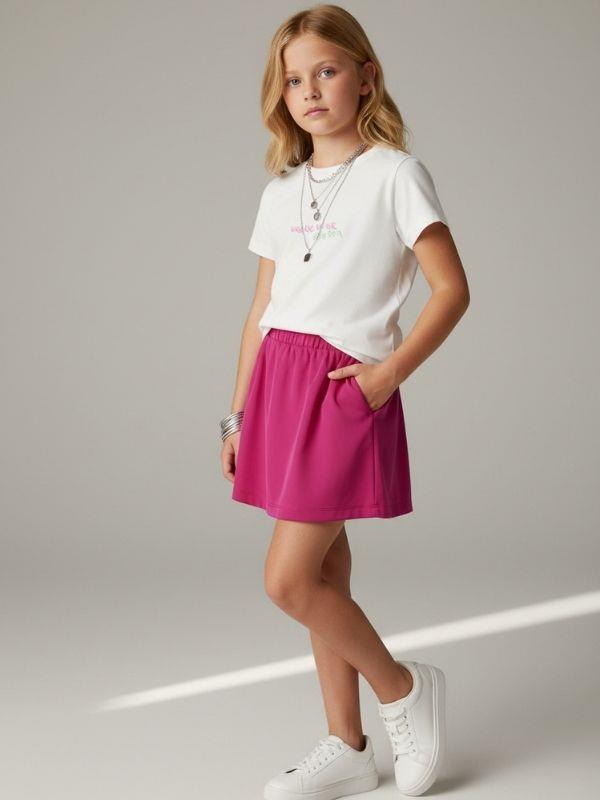 Kız Çocuk Baskılı Basic Tshirt Ürün Açıklaması: Modern ve enerjik tasarımıyla öne çıkan kız çocuk kısa kollu tişört, günlük kombinlerin vazgeçilmez parçalarından biridir. Ön kısmındaki minimal yazı baskısı ve arka bölümde yer alan büyük grafik tasarım detayı modele dinamik ve trend bir hava katar. Yumuşak ve nefes alabilen kumaş yapısı sayesinde gün boyu konfor sunar. Rahat kalıbı hareket özgürlüğü sağlarken, bisiklet yaka tasarımı kolay giyilip çıkarılmasına yardımcı olur. Dayanıklı baskı yapısı sayesinde uzun süre formunu korur. Etek, şort, jean ve taytlarla rahatlıkla kombinlenebilir. Günlük kullanım, okul kombinleri ve yaz stilinde hem rahat hem şık bir görünüm sunar. Hem sade hem dikkat çekici tasarımıyla bu tişört, kız çocuk gardırobunun enerjik ve modern parçalarından biri olacaktır.