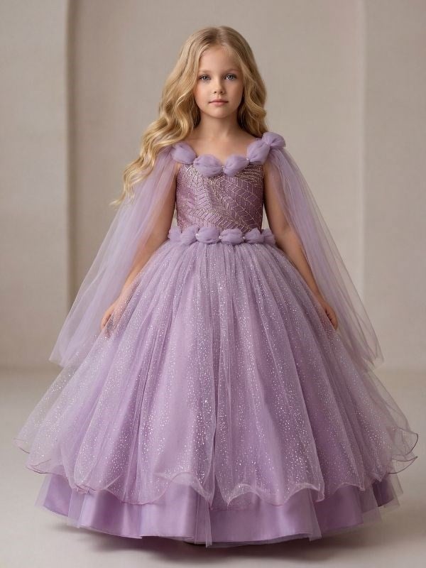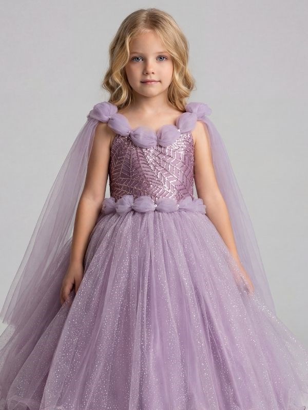 Kız Çocuk Tarlatanlı Simli Pullu Omuzları Tül Detaylı Abiye Elbise (22MABYZ775)