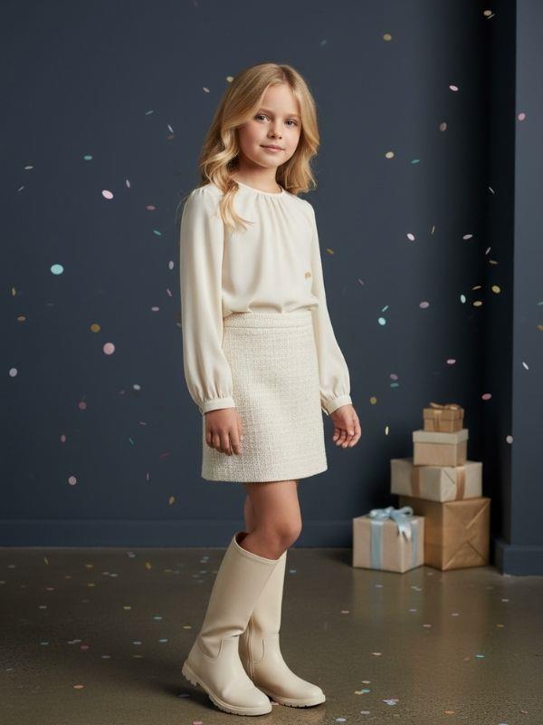 Modern ve şık bir siluet sunan bu etek, sade tasarımına eşlik eden hafif parıltılı dokusuyla özel günlerden günlük kombinlere kadar geniş bir kullanım alanı sağlar. Yumuşak ve rahat yapısı, çocukların gün boyunca özgürce hareket etmesine imkân tanırken, esnek bel kısmı kolay giyilip çıkarılabilir bir form sunar. Vücudu nazikçe saran düz kesimi, eteğe hem zarif hem de zamansız bir görünüm kazandırır. Hafif esneyen yapısı sayesinde her adımda rahatlık sunan etek, farklı üstlerle kolayca kombinlenebilir ve çok yönlü bir stil oluşturur. Kullanışlı yapısı, modern dokusu ve şık duruşuyla bu etek, miniklerin özel günlerinde olduğu kadar günlük stilinde de severek tercih edeceği bir parça olmaya adaydır.