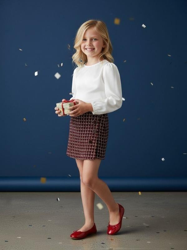 • Modern ve zarif görünüm sağlayan dokulu kumaş tasarım • Düz, A-kesim formu ile hem rahat hem şık duruş • Bel kısmı rahat kullanım sunan lastikli yapıdadır • Doğum günü, özel gün ve okul kombinleri için ideal • Basic bluz, gömlek, kazak ve hırkalarla kolayca kombinlenebilir • Hafif yapısı sayesinde gün boyu hareket özgürlüğü sağlar • Zamansız dokusu ile çocuk dolaplarının favori parçalarından