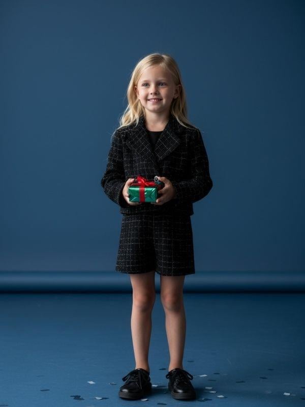 Zarif ve modern çizgilerin bir araya geldiği bu kısa tweed ceket, minik moda severlerin stilini bir üst seviyeye taşımak için tasarlandı. Şık dokusu, göz alıcı düğme detayları ve crop kesimiyle hem özel gün kombinlerinde hem de günlük şıklıkta rahatlıkla kullanılabilir. Tam astarlı yapısı sayesinde konforlu bir kullanım sunarken, hafif yapısıyla hareket özgürlüğü sağlar. Etek, elbise ve yüksek bel pantolonlarla mükemmel bir uyum yakalar. Ürün Özellikleri Şık ve dokulu tweed yüzey Crop (kısa) kesim modern ceket formu Ön kısımda dekoratif düğme detayları Çift kapaklı cep görünümü Yumuşak iç astar Omuz yapısında formu güzel gösteren kalıp Kumaş ve Kalite Bilgisi Dokulu tweed kumaş İç astarlı yapı Dayanıklı ve formunu koruyan doku Kullanım Alanları Özel günler, doğum günü partileri, yılbaşı çekimleri, okul etkinlikleri, fotoğraf çekimleri ve günlük modern kombinler