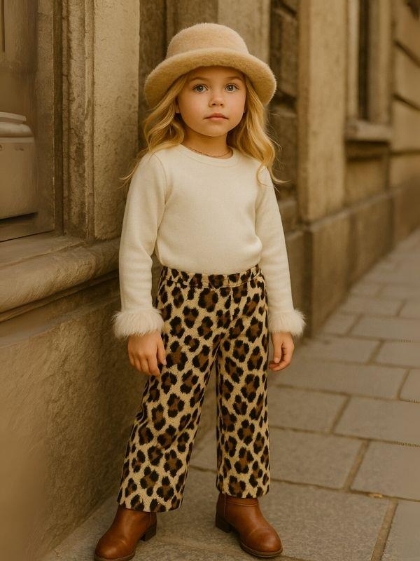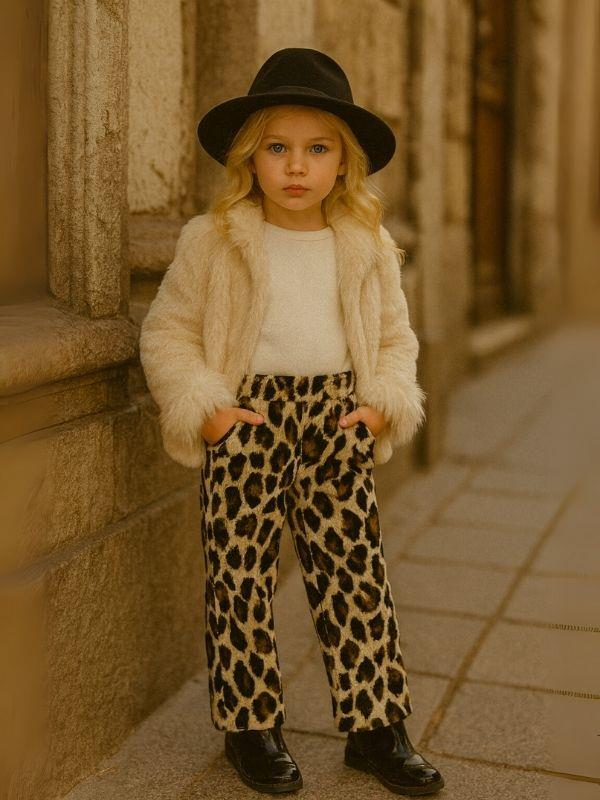 Ürün Açıklaması Enerjik ve özgün tarzıyla dikkat çeken bu çocuk leopar desenli pantolon, miniklerin kombinlerine cesur bir dokunuş katıyor. Yumuşak ve rahat dokusu sayesinde gün boyu konfor sağlarken, modern kesimi ile şıklığı ön plana çıkarıyor. Leopar deseni, modası hiç geçmeyen bir klasik olarak çocukların gardırobuna stil katıyor. Günlük kombinlerden özel etkinliklere kadar geniş bir kullanım alanı sunan bu pantolon, sade üstlerle tamamlandığında desenin enerjisini öne çıkarır. Öne Çıkan Özellikler Leopar desen ile enerjik ve modern görünüm Rahat kalıp ve yumuşak kumaş Günlük ve özel günler için ideal Modası geçmeyen zamansız tasarım Farklı üstlerle kolayca kombinlenebilir Kombin Önerisi Beyaz basic tişört ve spor ayakkabılarla gündelik şıklık; siyah bluz ve botlarla ise daha iddialı bir stil oluşturabilirsiniz. Krem ve kahverengi tonlarıyla da uyumlu kombinler yaratabilirsiniz.