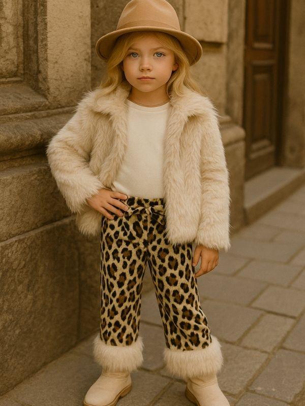 Kız Çocuk Tüylü Yumuşak Dokulu Leopar Desenli Pantolon (26KPNTZ60470)