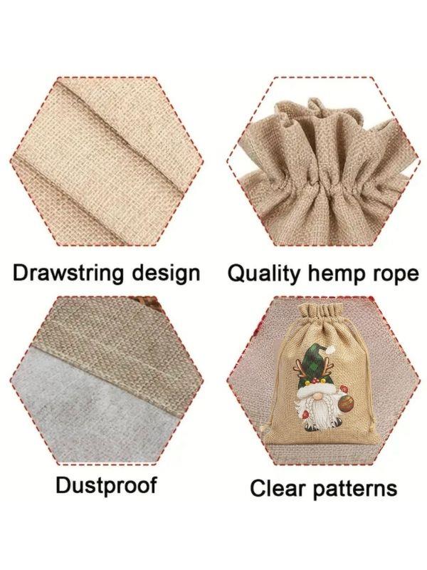 Sevimli Noel Baba Cüce Baskılı Hediyelik Jüt Kese(10x15 cm) (26MHDY001)