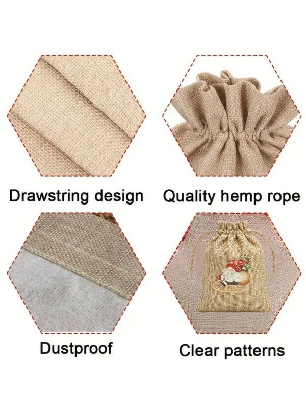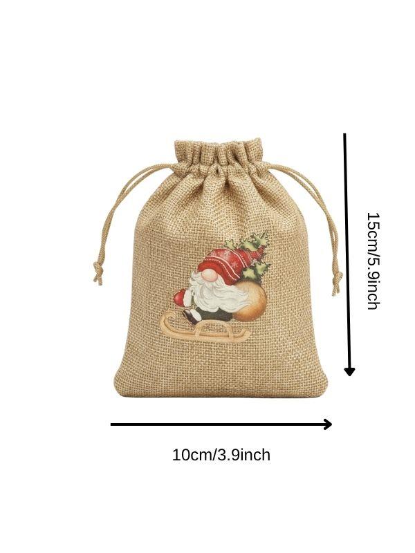 Sevimli Noel Baba Cüce Baskılı Hediyelik Jüt Kese(10x15 cm) (26MHDY001-3)