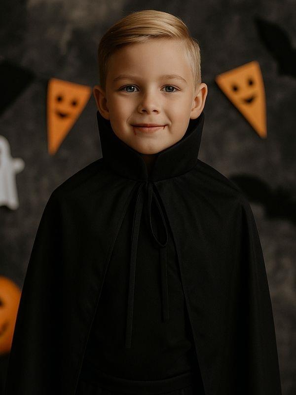 Ürün Açıklaması: Küçük kahramanlar ve sihirli karakterler için tasarlanan bu siyah pelerin, sade ama dikkat çekici görünümüyle kostüm partilerinin yıldızı olmayı sağlar. 90 cm uzunluğundaki model, çocukların hareket özgürlüğünü kısıtlamadan rahat bir kullanım sunar. Yüksek yaka detayıyla klasik vampir tarzını yansıtırken, önden bağlama ipi sayesinde kolayca takılıp çıkarılabilir. Hafif kumaşıyla konforlu bir kullanım sunar ve vücuda zarif bir şekilde oturur. Halloween partileri, doğum günü kutlamaları, okul etkinlikleri ve temalı fotoğraf çekimleri için mükemmel bir tamamlayıcıdır. Öne Çıkan Özellikler: 90 cm uzunluk Yüksek yaka tasarım Yumuşak ve dökümlü kumaş Önden bağlama ipiyle kolay kullanım Hafif ve konforlu yapı Çocuk kostümleri için ideal tamamlayıcı Kullanım Alanları: Vampir, sihirbaz, pelerinli kahraman veya gotik temalı kostümlerle mükemmel uyum sağlar. Halloween, okul gösterileri, doğum günü partileri ve fotoğraf çekimlerinde dikkat çekici bir detay olarak öne çıkar.
