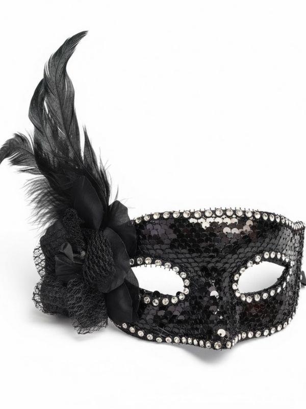 Tüy Detaylı Oynar Pullu Party Maskesi (26MSKZ1606)