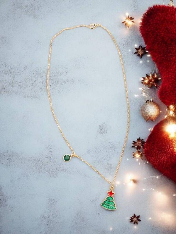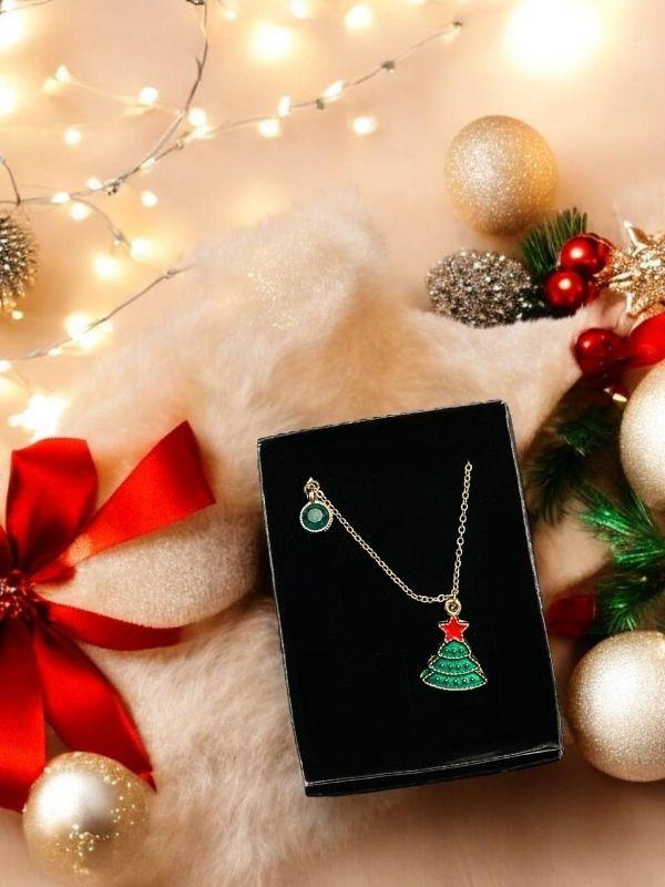 Yılbaşı Temalı Çam Ağacı Charmlı Kutulu Tasarım Kolye (25KLYZ006)